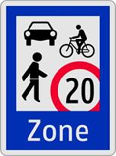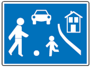Auf Wohnstraßen ist das Gehen, Spielen, Rollschuhfahren und Radfahren erlaubt. Einsatzfahrzeuge, der Straßendienst, die Müllabfuhr und Kraftfahrzeuge, die zu- oder abfahren müssen, dürfen nur in Schrittgeschwindigkeit fahren, um die FußgängerInnen und RadlerInnen nicht zu gefährden.